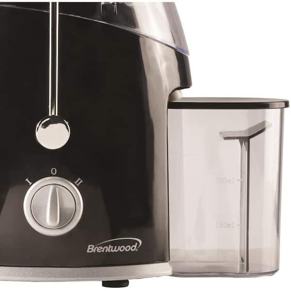 Now you can easily juice fruits, veggies, leafy greens and more. The powerful Brentwood Appliances’ JC-452B 2-Speed 400 Watt Juice Extractor pulverizes whole fruits and vegetables, extracting deliciously fresh and healthy juice. Enjoy juice immediately with the included 15oz graduated jar. Removable parts are dishwasher safe while a safety interlock prevents accidents.