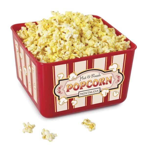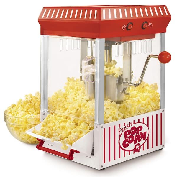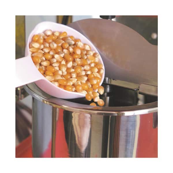 With its unique vintage style and ease of use, this Nostalgia popcorn maker KPM200 will be the hit of every party. Featuring a large 2.5 oz. stainless steel kettle with a built-in stirring system, can pop up to 10-cups of popcorn per batch. The vented windows and lighted interior allow you to watch the popcorn popping so you know right when to empty the kettle and the tilt door allows for easy serving access. It includes an oil measuring spoon and kernel measuring cup to ensure a perfectly popped popcorn every time. Popcorn has never tasted so good at home.