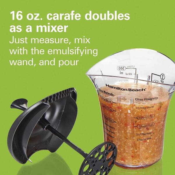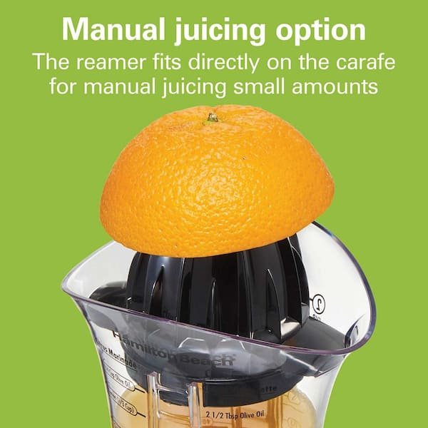 Have some delicious homemade juice with the Hamilton Beach 2 Cup Electric Citrus Juicer. Making fresh and healthy juice right at home couldn’t be easier thanks to this electric juicer, simply press your fruit of choice down on the reamer to have the juicer automatically juice and with the auto-reversing action you can be sure you’ll get every last drop. You can even detach the reamer and place directly on top of the included carafe to juice manually, perfect for when you need small amounts. The detachable pitcher, lid, reamers, and wand are all dishwasher safe for super easy clean up.