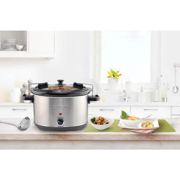 Make cooking easier with this 6-qt. slow cooker. It comes with a removable ceramic pot and a locking, tempered glass lid. For safety, it features cool-to-the-touch handles and knobs. Brushed stainless steel construction ensures lasting use.