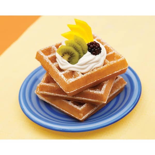 Make your weekends special with hot, tasty waffles made in the Hamilton Beach Belgian Style Waffle Baker. Homemade or store-bought batter cooks to a golden brown on the easy-to-clean non-stick grids in only 5 minutes. Easy-to-see ready light lets you know when the Belgian waffle maker is ready for batter, so there’s no guesswork involved. When finished, the non-stick grids clean with a simple wipe down. Cook crispy, delicious Beglian style waffles and so much more! Get creative with gourmet recipes built from simple ingredients. Compact, upright storage allows the waffle maker to fit easily into the cupboard or pantry.