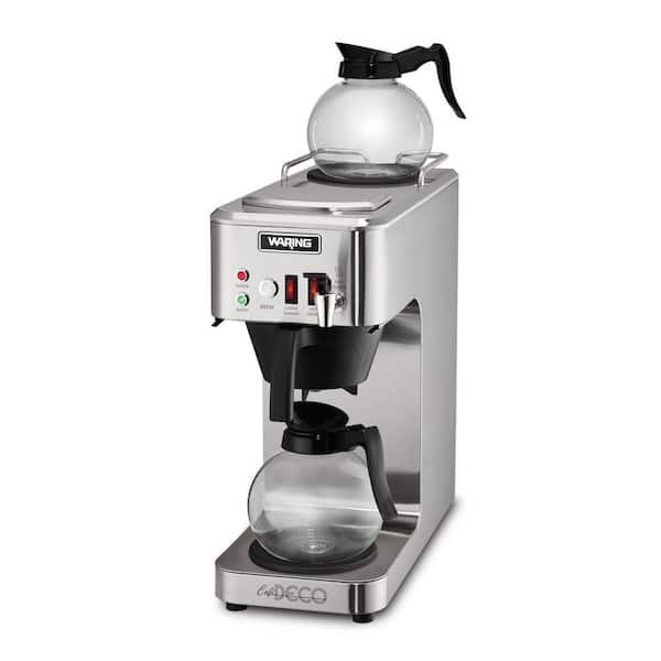 Designed to meet high demand for fresh-brewed coffee, this coffee brewer offers the option of pour-over or plumbing to brew the perfect pot every time. Just pour cold water through the top or use a plumbing connection. Two individually operated warmers maintain the ideal serving temperature. Perfect for front- or back-of-the-house use and durably constructed of stainless steel, this easy-to-maintain coffee brewer wipes clean in seconds. The front-mounted faucet offers the additional convenience of hot water on demand.